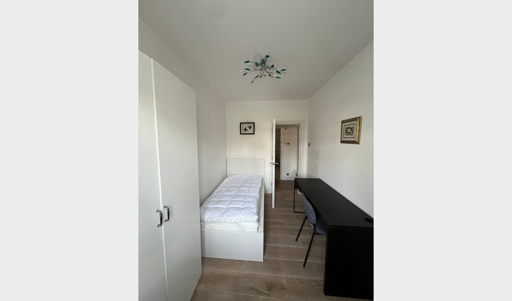 A bright and cosy single bedroom is available in a newly refurbished flat within a solid brick house, complete with a shared garden and parking facilities.