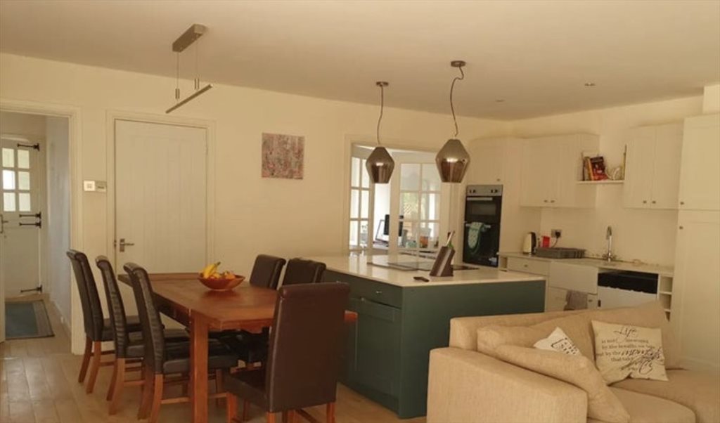 The room is spacious with a double bed, a wardrobe, a smart TV, a foldable table/ desk and a beautiful leather chair. The bedroom is accessible from the main entrance or from the garden gate through a separate entrance. There is a en-suite bathroom with a shower, a washing machine and a tumble dryer.