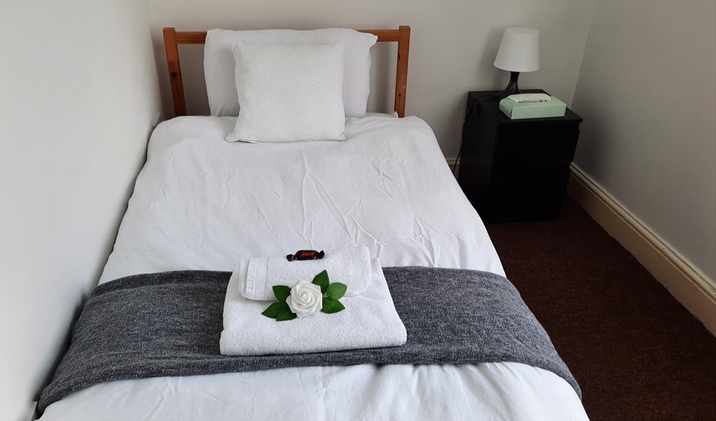It has one single bed with comfortable mattress, bedside and wardrobe. Virgin broadband access.