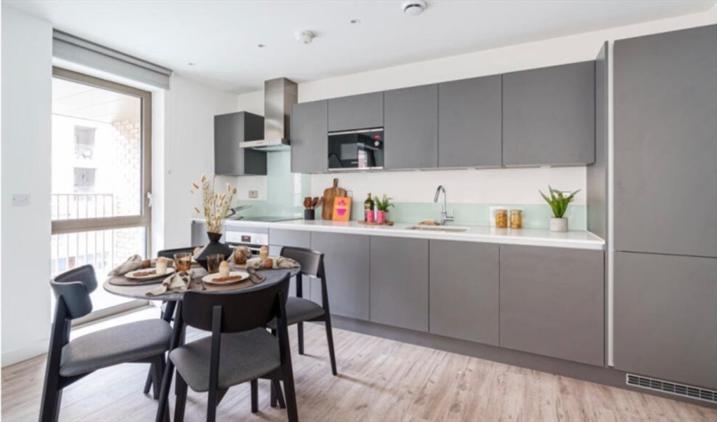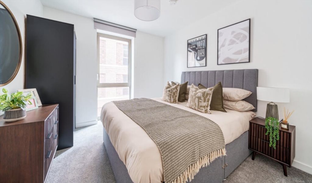 A bright and well-presented ensuite room in a new-build property, available in a modern, clean, and quiet home. The room is fully furnished with a comfortable bed, wardrobe, and storage, and includes a private ensuite bathroom.