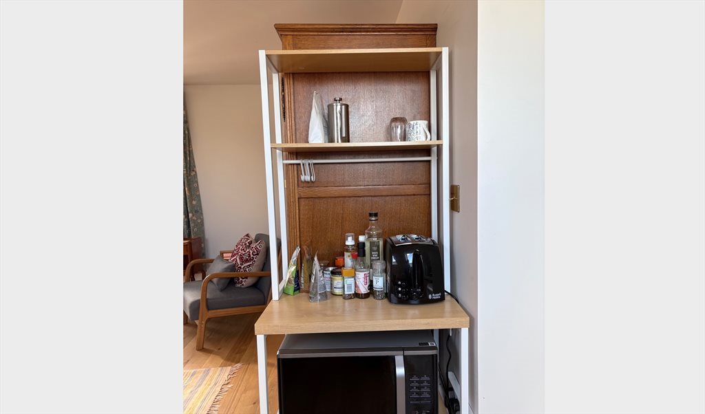 The space is fully furnished with a double bed, a large wardrobe, desk, armchair and a small dining table. A compact kitchenette includes: a stove, fridge, micrawave, kettle, a wide slide toaster, grater, moka, french press and pretty much all the essential utensils. The newly renovated bathroom is for only private use. The utility room is on the ground floor.
