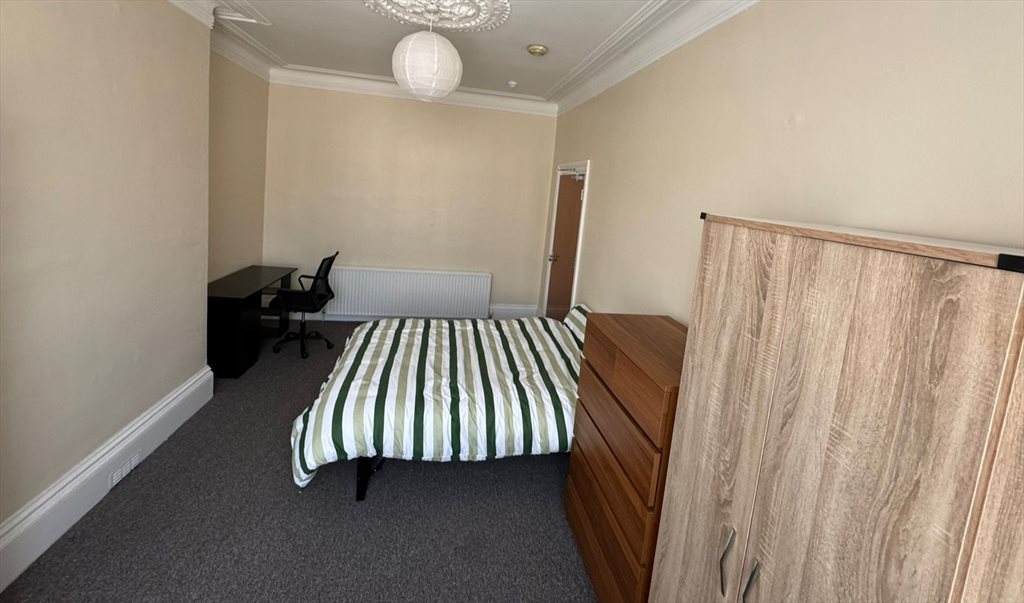 The room can come furnished or unfurnished, totally up to you! Right now it’s got a brand new double bed and mattress, a chest of drawers, and a two-door wardrobe, everything’s in great shape.