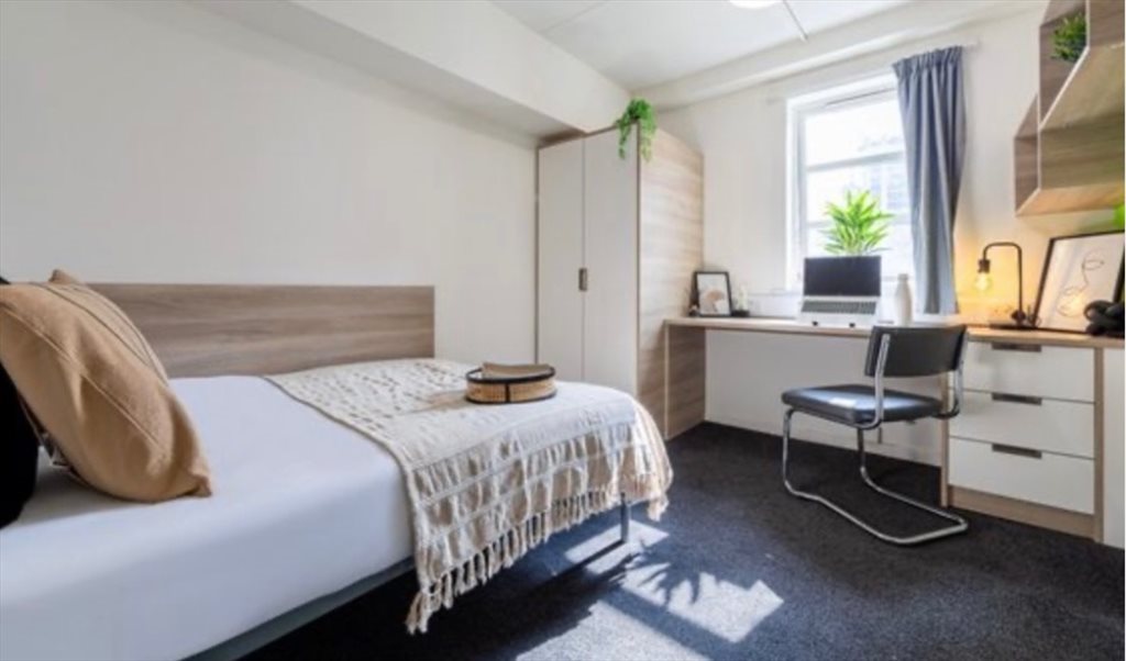 This is in a private student housing building. There are amenities on site too including, laundry machines, free gym, games room with pool tables, outside courtyard. There is underground parking under the building and access to the car park from the building, however you would need to get a permit or pay & display.