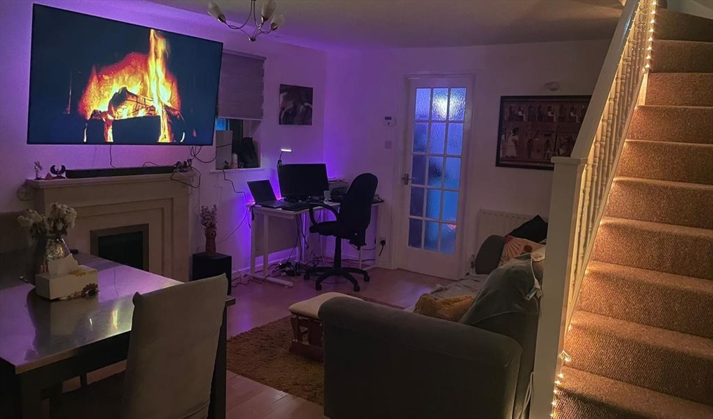 The house is a 3 bedroom house. Just myself living there. The house is a smart house with voice command assistant (Nest and Alexa). Lights are smart and colour changing/dimmable so you can choose your scene. I have now a 65" Samsung Smart TV and sound system with all the possible subscriptions and platforms. I have a PS5 with FIFA inclued. I have loads of boardgames too!