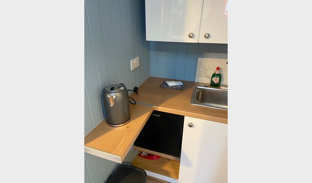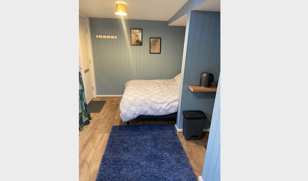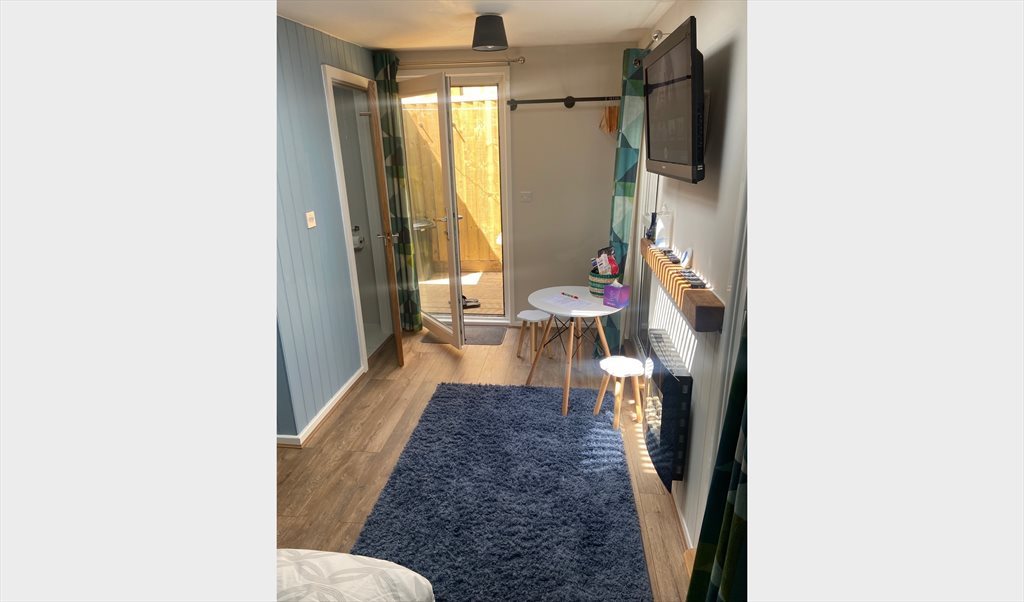 The Chalet is a garden room with its own private secure entrance. There is a small decking area to the rear. TV with a fire stick, small kitchenette with a microwave, toaster,fridge and kettle plus cutlery is provided. King size bed and en-suite shower room with towels etc. Wifi is not provided but there is a good mobile signal and it doesn’t have a postal address hence a short stay or a professional person working in the area with their own address is preferred. The monthly cost is all inclusive.