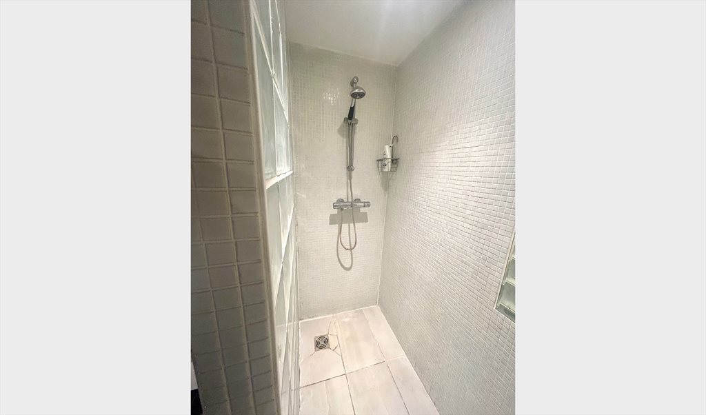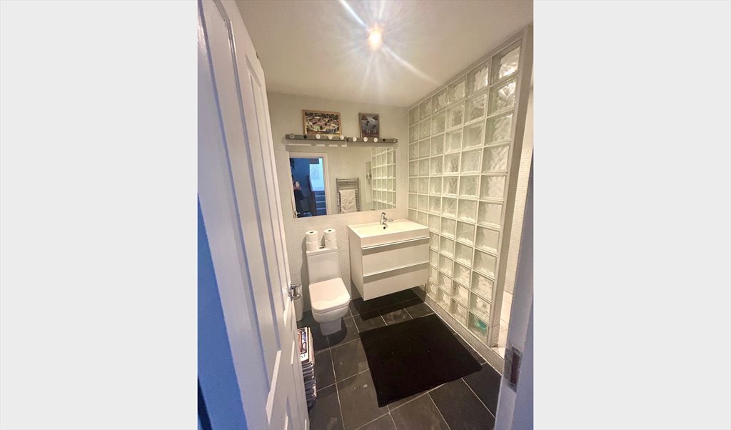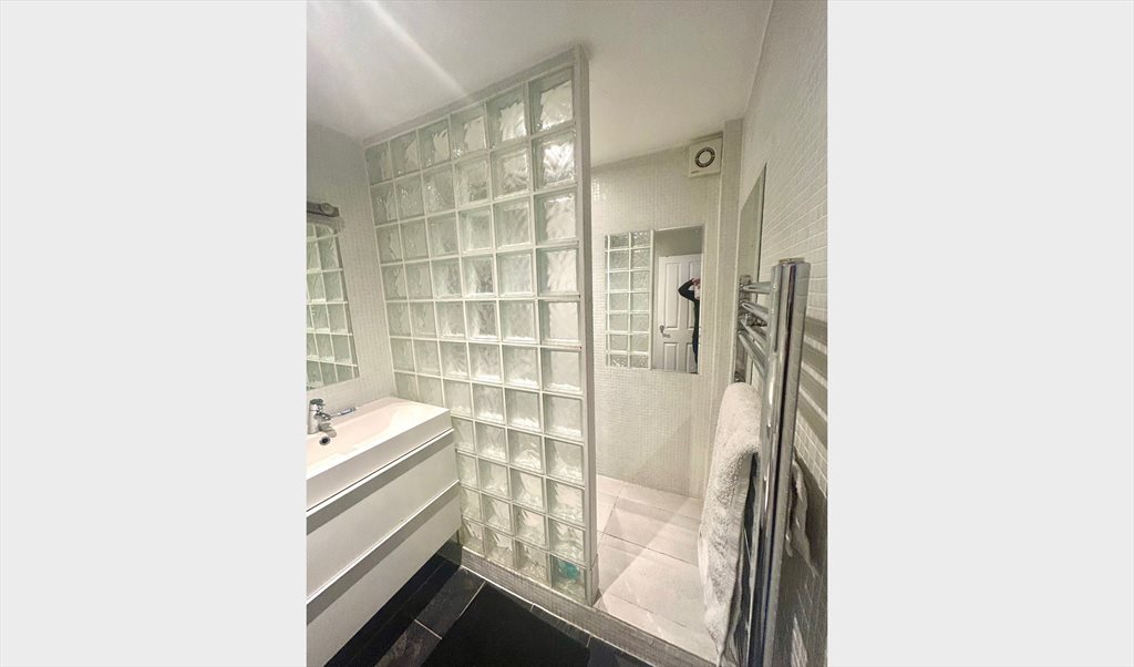 The bathroom which features a good-sized and large walk in shower, is bright and spacious.