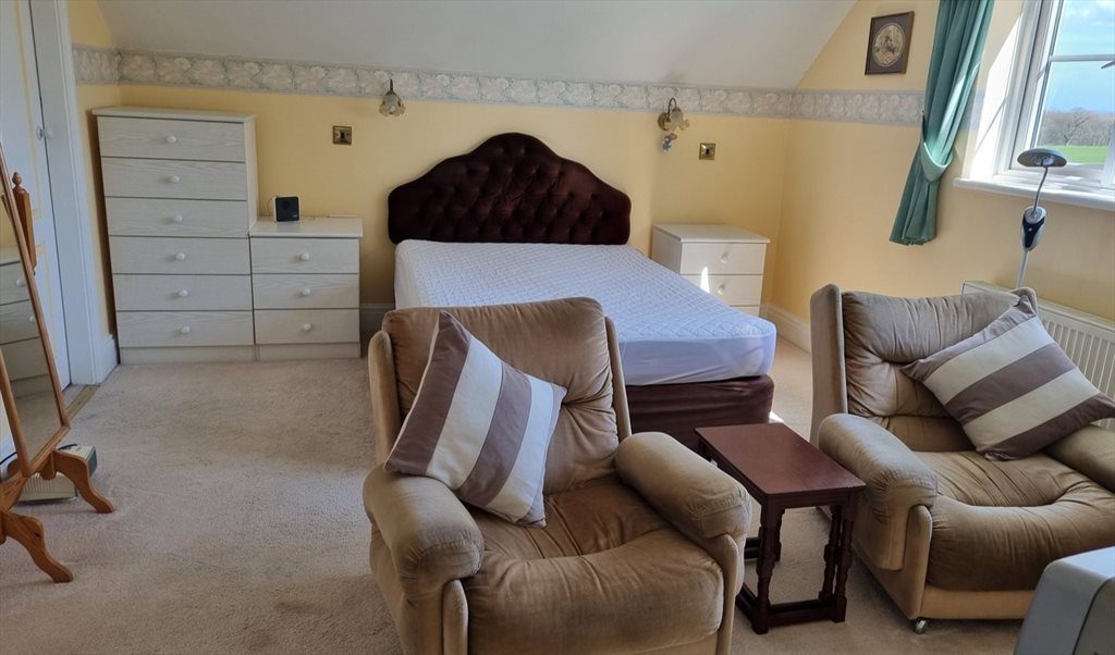 very comfortable with Bath/Shower, WC, walk in Wardrobe, seating area with TV.