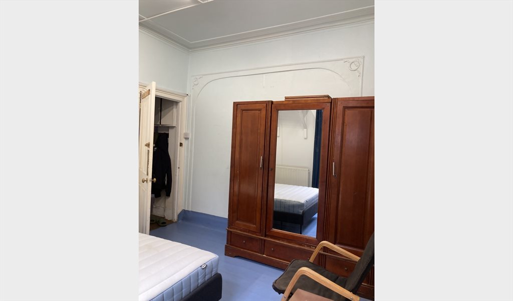 The room is full furnished with big wardrobes and desk.
