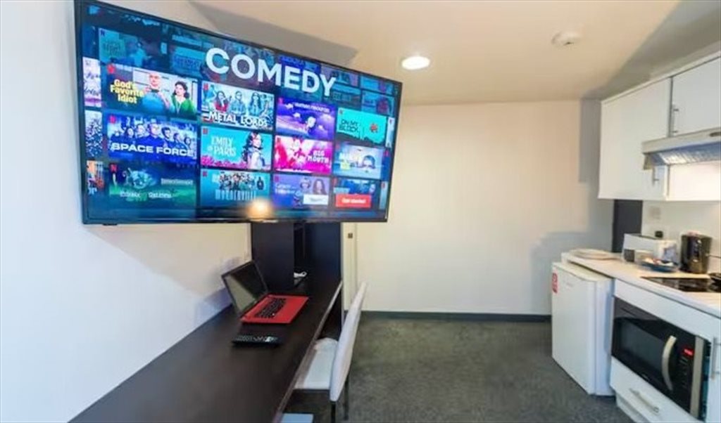 There is a communal kitchen and lounge downstairs for you to use which is shared with other guests but kept regularly clean.