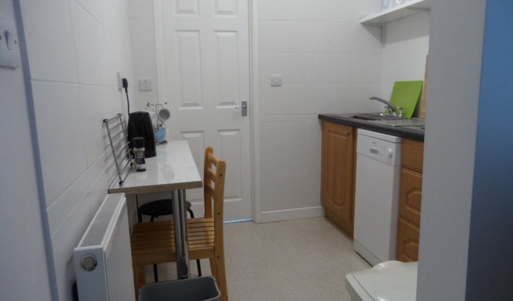 The bedroom has a comfortable 4' bed, large desk and chair, chest of drawers, wardrobe and easy chair. The kitchen is fully equipped with a hob, fridge/freezer, sink, dishwasher, combination microwave, kettle, table and stools, storage cupboards and shelf. The bathroom is clean and bright with a large shower cubicle. The sitting room and garden are communal areas