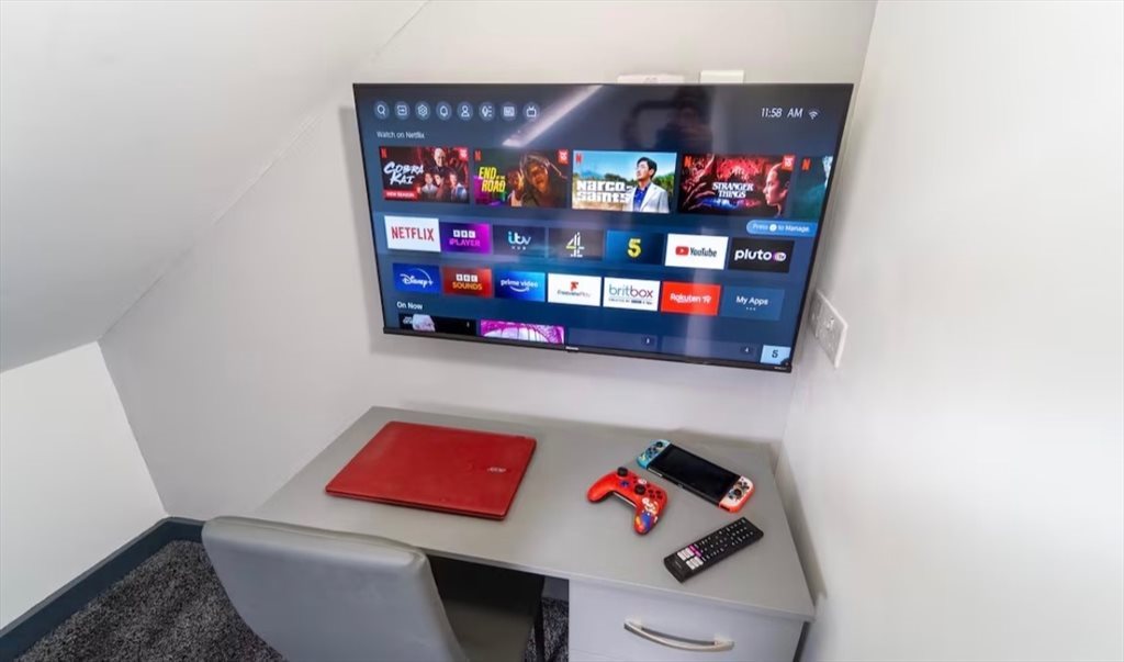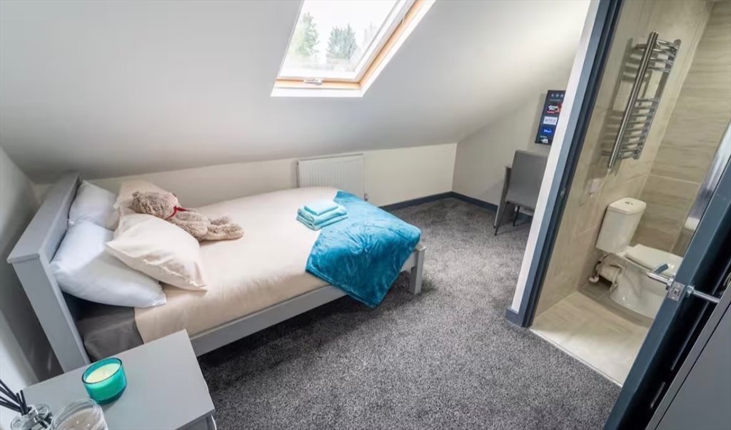 This stylish ensuite room offers everything you need to relax, whether you’re visiting for a short break or a longer stay. Enjoy a 43” TV and complimentary high-speed WiFi for your convenience.