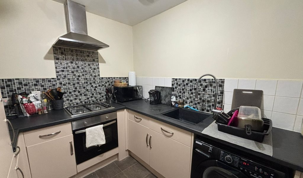 - Modern fitted kitchen with oven, gas hob, extractor fan and space for appliances