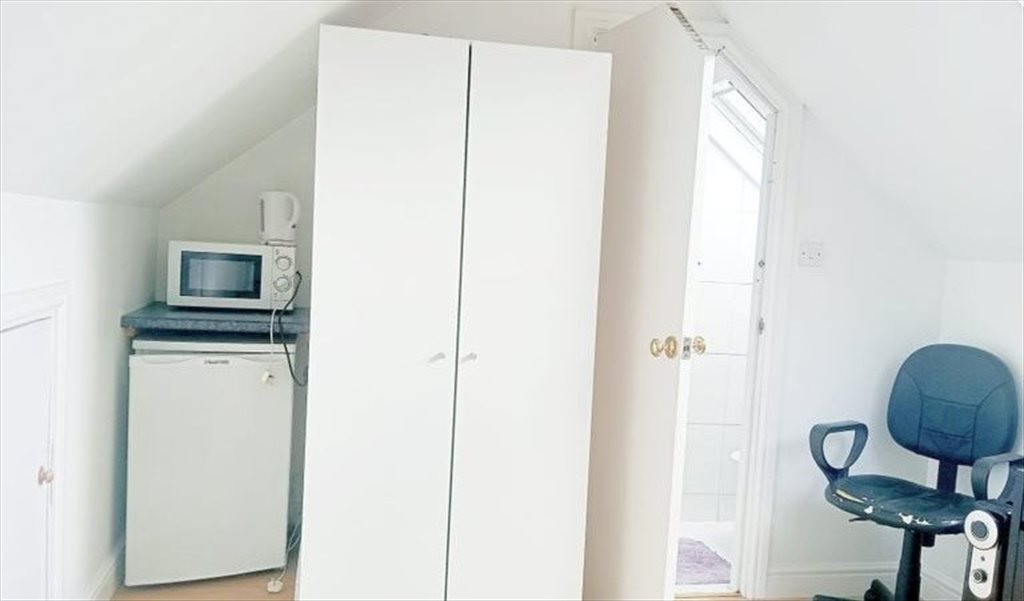 This beautiful room offers a King-size double bed for ultimate relaxation, alongside essential modern furniture: a large wardrobe, a productive desk and chair, and extra cupboard space, providing a cozy and private space.
