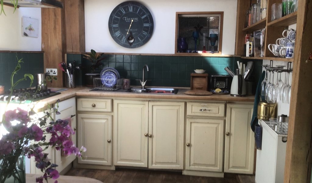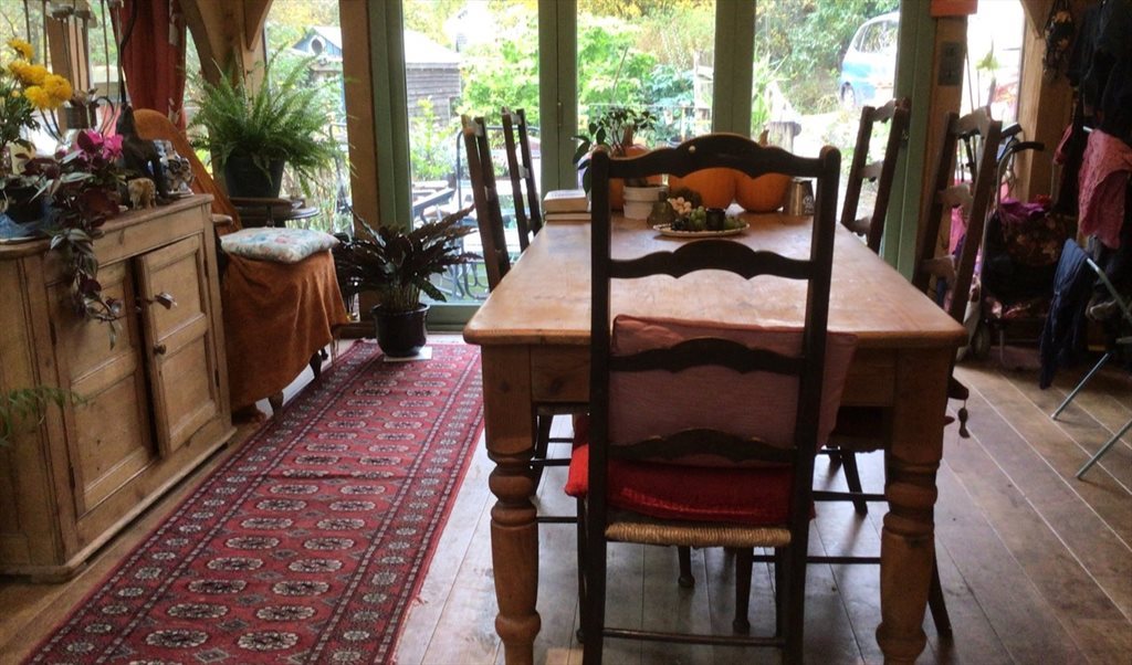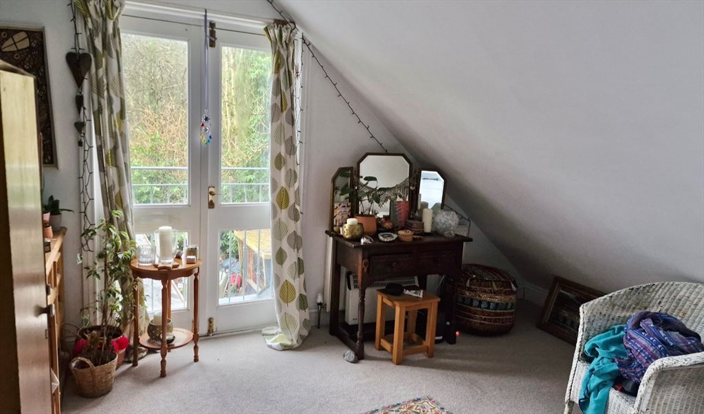 We are on the edge of Dartmoor, conveniently just a few minutes walk into Ashburton for shops, cafes and Arts Centre. It’s between Exeter and Plymouth, both about 30 minutes away. We live in a characterful, converted Queen Anne town house with riverside garden. The attic has a Juliet balcony overlooking countryside and some extra storage on the landing outside. There’s a comfy king size bed ( bedding available), wardrobe, drawers and desk. The large bathroom is shared with one other considerate housemate. Downstairs the kitchen, dining area and sitting space are open-plan and lead out to patios and garden.