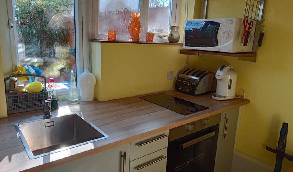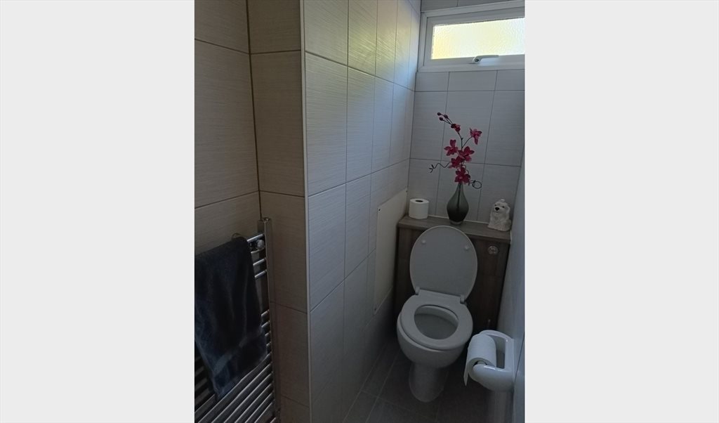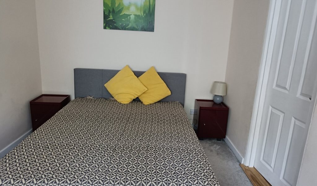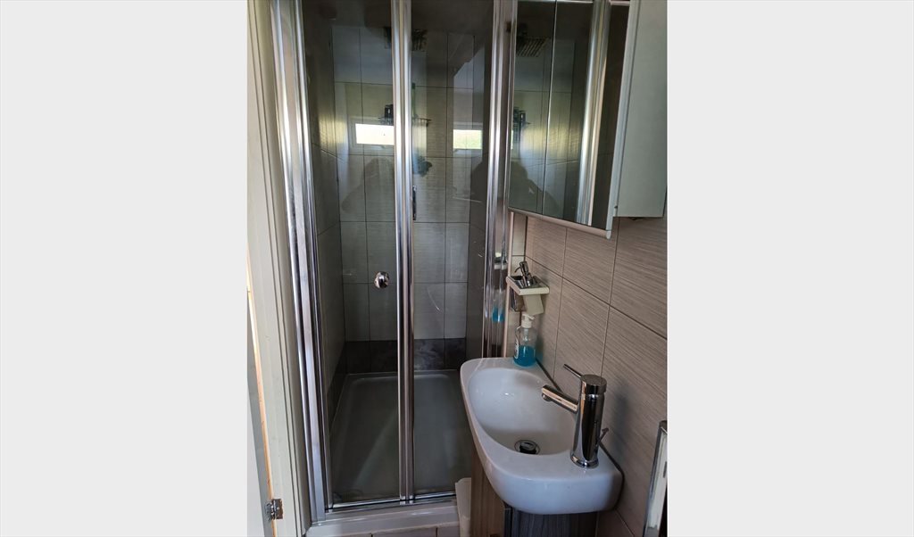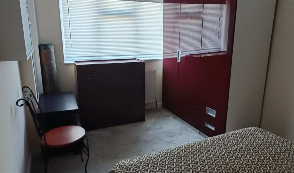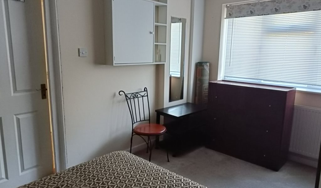 Street facing , bright. spacious and furnished double bedroom with ample underbed, cupboard and chester of drawers storage including shelving and mirror. With shower & toilet including kitchen