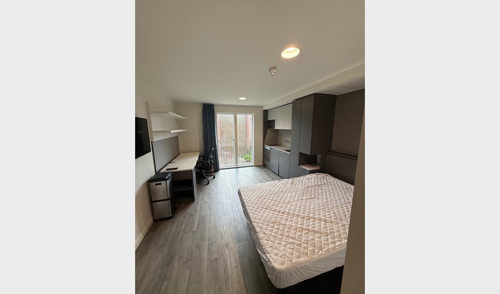 • Fully furnished studio with double bed, desk & chair, smart TV, and ample storage space
